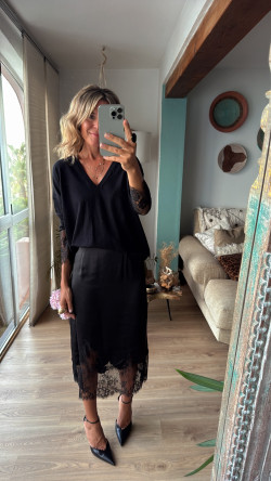 LOLA negro, falda satinada